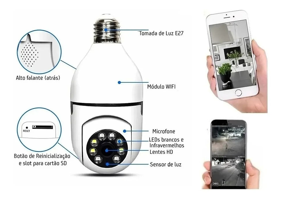 Câmera de Segurança Lampada Wifi Smart Jortan Jt-8177 Branco